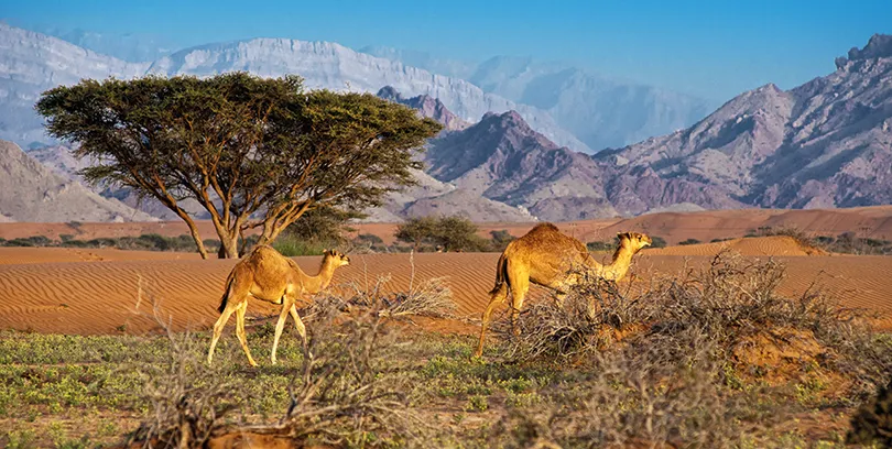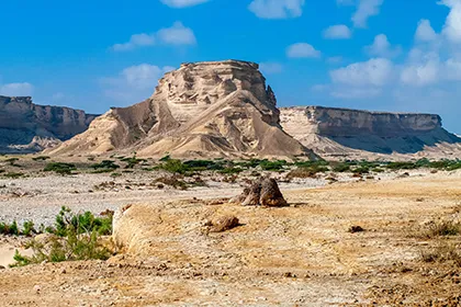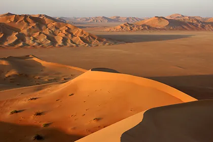 - Tag 1: Geführte Fahrt mit einem Beduinen-Guide von Salalah über das Qara Gebirge bis zur Sandwüste Rub Al Khali mit der Wüstenstadt Ubar. Übernachtung in einem Zelt.