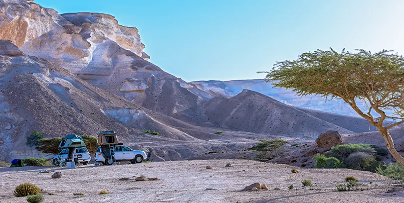- Tag 4: Übernahme des Mietwagens mit Campingausrüstung und Fahrt nach Mirbat und der Küste entlang nach Shuwaymiyah. Übernachtung im Zelt